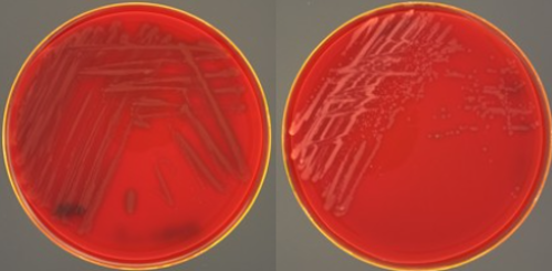 Bilde 1 og 2 – Til venstre ses variant Moritella viscosa med grålige kolonier. Til høyre klassisk M. viscosa med hvite kolonier